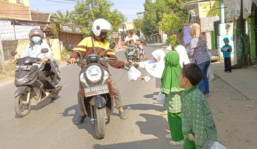 Murid TK Islam An Nur Pabangiang secara rutin melakukan sedekah Jum’at dengan membagikan paket makanan dan minuman kepada para pengendara motor dan orang-arang yang membutuhkan.