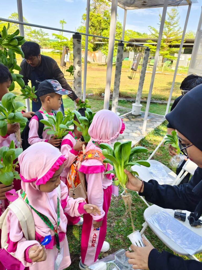 Di kegiatan ini, murid-murid disambut dengan hangat oleh pemandu yang memberikan penjelasan tentang berbagai jenis tanaman dan manfaat menjaga lingkungan. Anak-anak juga diajak untuk menanam bibit sayuran. Mereka terlihat antusias saat memegang sekop kecil dan menggali tanah untuk menanam bibit tersebut.